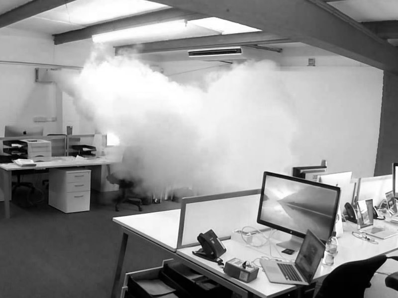 Η λύση που προτείνει η GROUP KVP αποτελεί το ταχύτερο μηχάνημα στην αγορά, επιτυγχάνοντας έως και 50m3/sec. Μέσα σε λίγα δευτερόλεπτα παράγει μη τοξική ομίχλη και μετατρέπει το χώρο σας σε ένα πυκνό σύννεφο που η ορατότητα είναι μηδαμινή.
